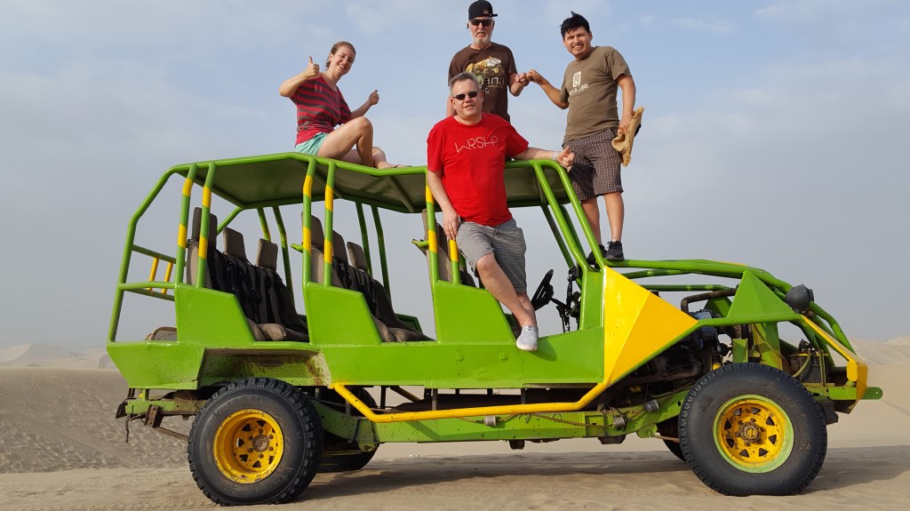 12. – 14.03.2020 Wir wollten unseren Gästen natürlich noch was von Peru zeigen. Darum flitzten wir am Nachmittag los in das Naturschutzgebiet Paracas. Es war eine coole Zeit und wir konnten viele Tiere beobachten. Von dort aus machten wir auch noch einen Trip nach Huacachina Ica, wo wir mit dem Dünnen Buggy durch die Dünnen gesaust sind. Bei einem kleinen Stopp, konnten wir Sandboard fahren… naja… eher rutschen.