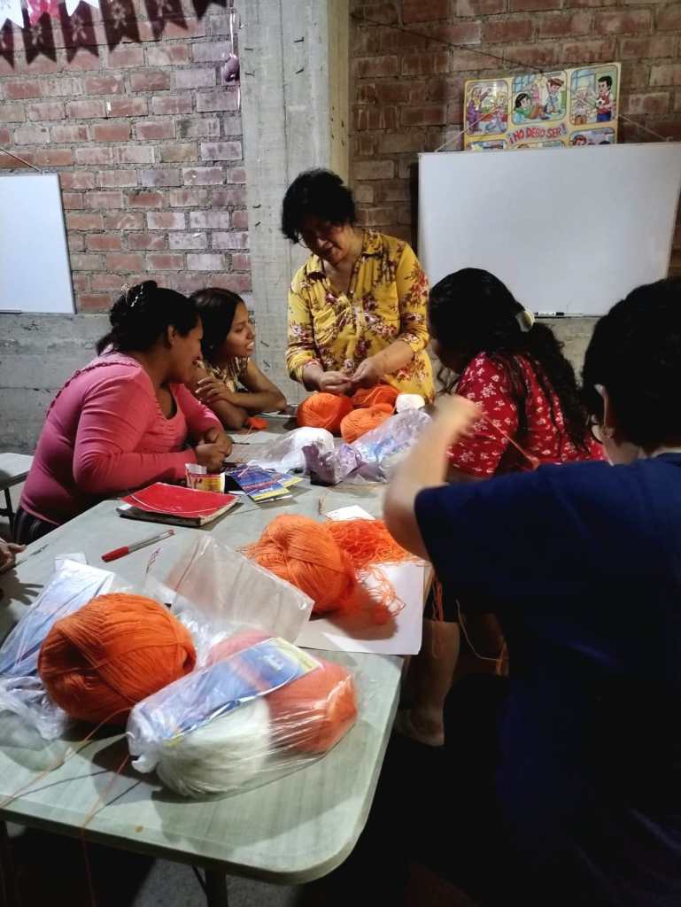 Mit den Mamas haben wir dieses Jahr angefangen Workshops zu machen, wo sie etwas erlernen können, wie zum Beispiel: nähen, stricken etc. Sachen die nicht so viel kosten, um es zu Hause nachzumachen und dann zu verkaufen. So bekommen sie eine Einnahmequelle. Sie sind mit vollem Elan mit dabei und haben viel Freude.